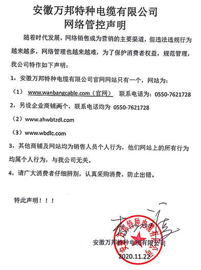 鄭重聲明:安徽萬邦特種電纜有限公司官方網站為:www_wanbangcable_com.0898bst.com,除此之外無任何子網站或合作網站,其余均為假冒偽劣。電話:0550-7621728 13485756353 地 址:安徽省天長市滁州高新技術產業開發區經四路29號